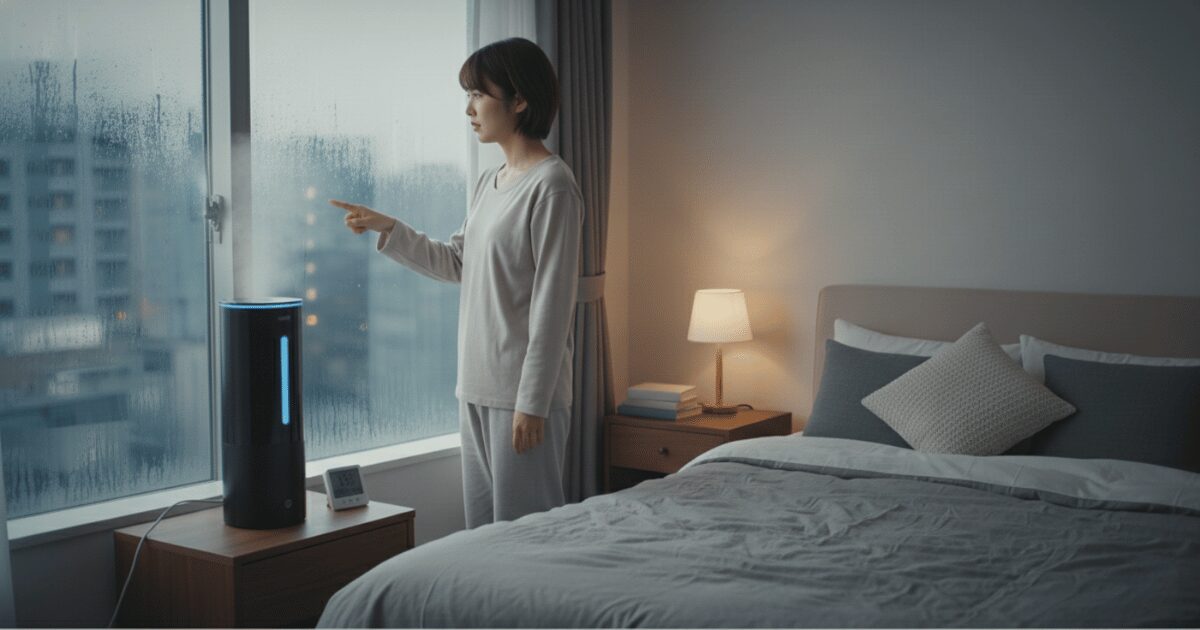特に気密性の高いRC造(鉄筋コンクリート)のマンションや、断熱性能が低いアルミサッシの物件では、加湿器を使っていなくても湿気がこもりやすく、対策に頭を悩ませている方も多いはず。